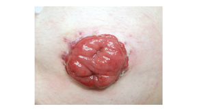 Your colostomy may be flat to your abdomen or it may stand out slightly. It will be soft to touch, pinkish-red in colour and moist; rather like the inside of your mouth.