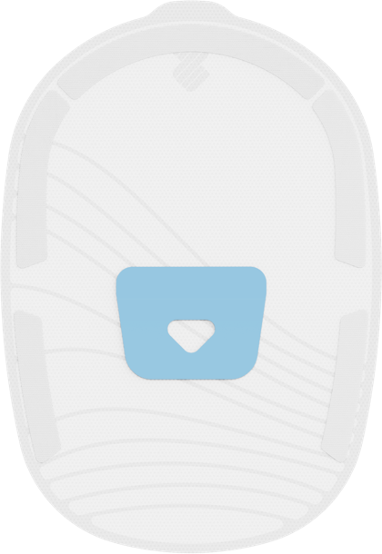 Den blå positioneringsfliken underlättar appliceringen av överdraget.
